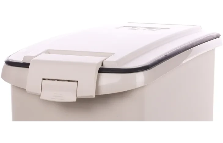 Diese beige Futtertonne ist perfekt für Ihren haarigen Freund! Hergestellt aus robustem Kunststoff und ausgestattet mit einem Griff und Rädern, damit Sie sie leicht bewegen können. Der Deckel klappt mit einer praktischen Klappe auf, die einrastet, und es ist sogar eine Schaufel dabei!